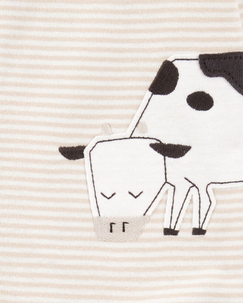 Baby Boy Cow Striped Snug Fit Cotton Footie 1-Piece Pyjamas – Tan